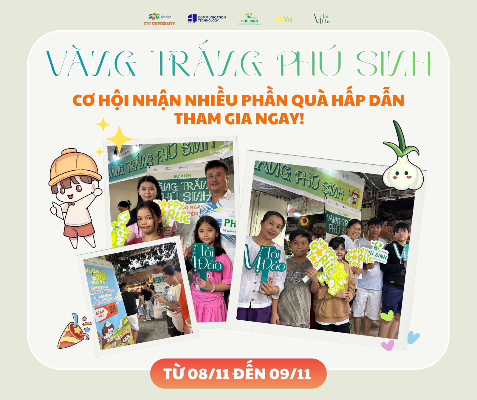 Không chỉ dừng lại ở trải nghiệm online, “Vườn Tỏi Vui Vẻ” còn được triển khai tại sự kiện “Vàng Trắng Phú Sinh” trong Tuần lễ Văn hóa – Ẩm thực Tân An Hội. Tại đây, người tham quan có thể trực tiếp chơi game, nhận quà và tìm hiểu quy trình sản xuất tỏi Lý Sơn đạt chuẩn OCOP 5 sao.