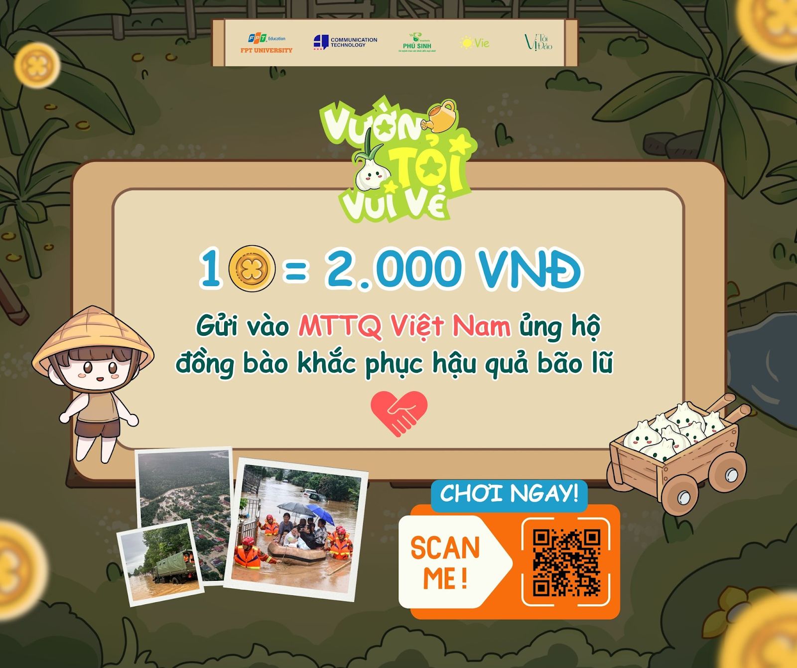 Điểm nổi bật của “Vườn Tỏi Vui Vẻ” nằm ở cơ chế gắn kết cộng đồng. Với mỗi tài khoản thu hoạch được 1 Đồng Tinh Hoa đầu tiên, Phú Sinh sẽ đóng góp 2.000 đồng vào Quỹ MTTQ Việt Nam hỗ trợ đồng bào vùng lũ.